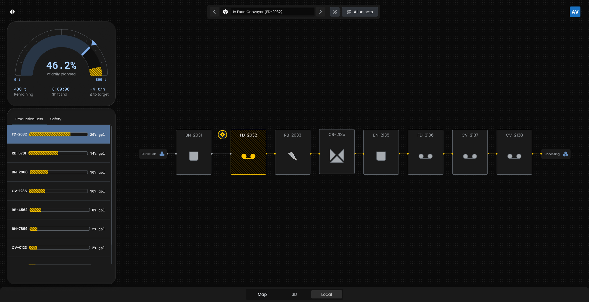 End of Shift / Pre-start Review - Production, Safety & Maintenance Events & Constraints with 3D playbacks